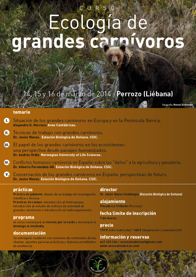 Ecología de aves acuáticas / Ecología fluvial / Ecología de aves forestales / Ecología de aves, tortugas y mamíferos marinos / Ecología y conservación de grandes carnívoros.