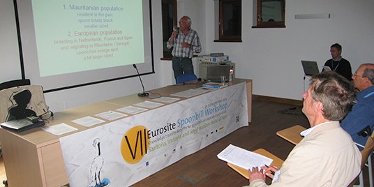 Por ejemplo, organizamos en el Parque Natural de las Marismas de Santoña, Victoria y Joyel el Eurosite VII Spoonbill Workshop, celebrado entre el 25 y el 30 de septiembre de 2012. Participaron en dicho congreso 35 expertos sobre la espátula común, llegados desde todos los países con presencia de la especie, tanto de Europa como del norte de África e incluso de Asia.